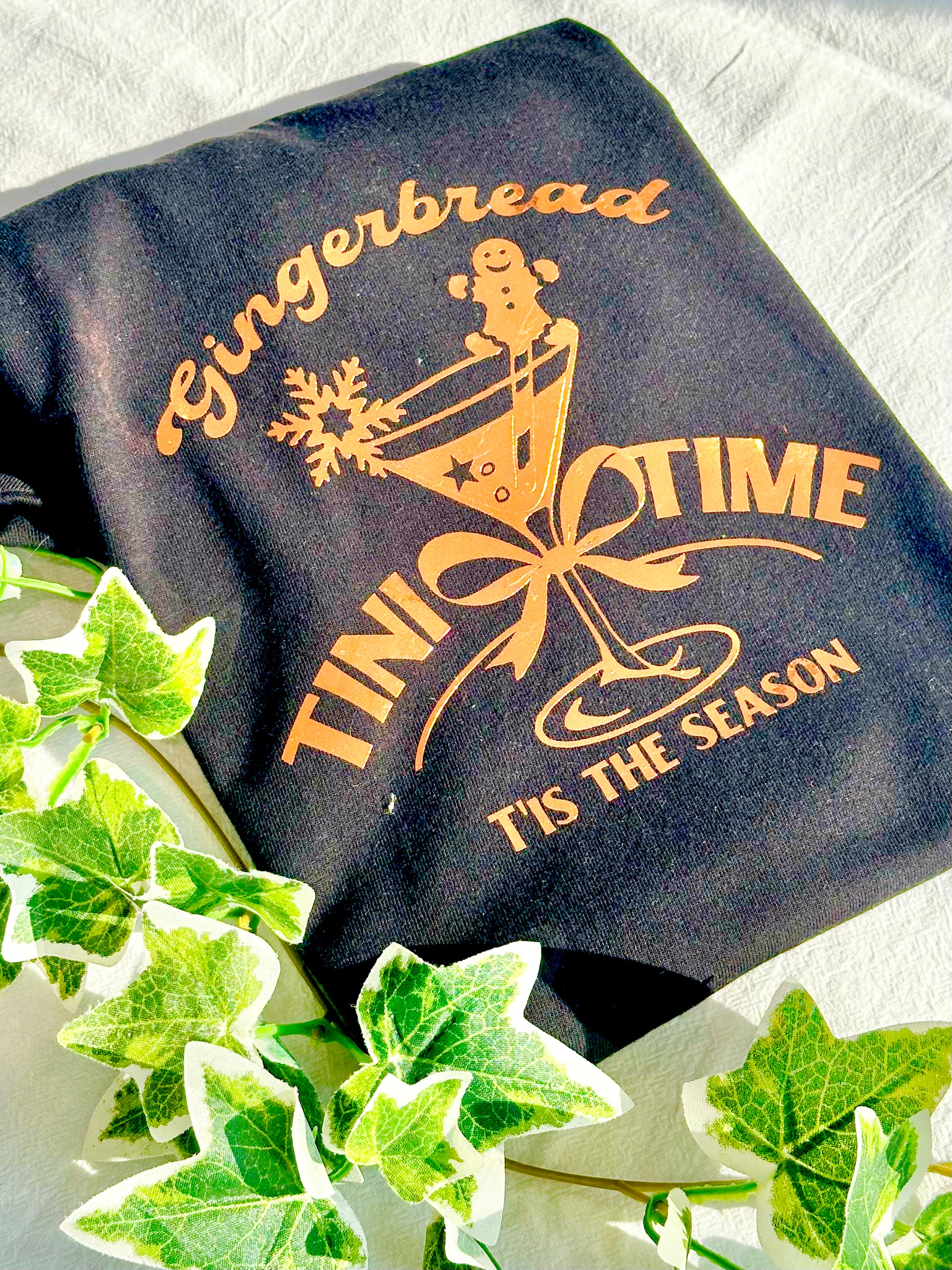 Celebrate the season in style with our Gingerbread Tini Time T-Shirt — a sleek black tee featuring a stunning metallic copper print. Perfect for festive nights out or cozy holiday gatherings, this Christmas T-shirt adds a playful twist with its chic gingerbread martini design. Designed for comfort and sparkle, it’s the ideal festive statement piece for the season!
